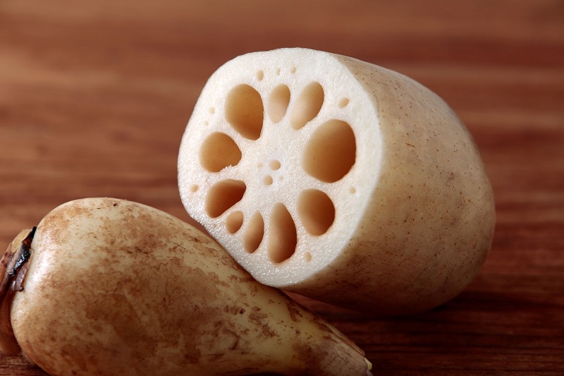 蓮根はハスの地下茎が肥大化したもので、一般的には10〜3月が旬の食べ物です。穴があいた断面が「先を見通す」という言葉を連想させ、日本では縁起の良い食べ物のひとつとしても知られています。