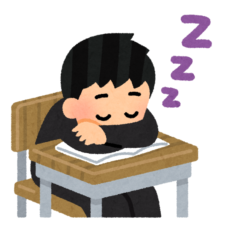 ・姿勢:机に伏せる、椅子にもたれかかるなど深い睡眠に入りすぎない姿勢